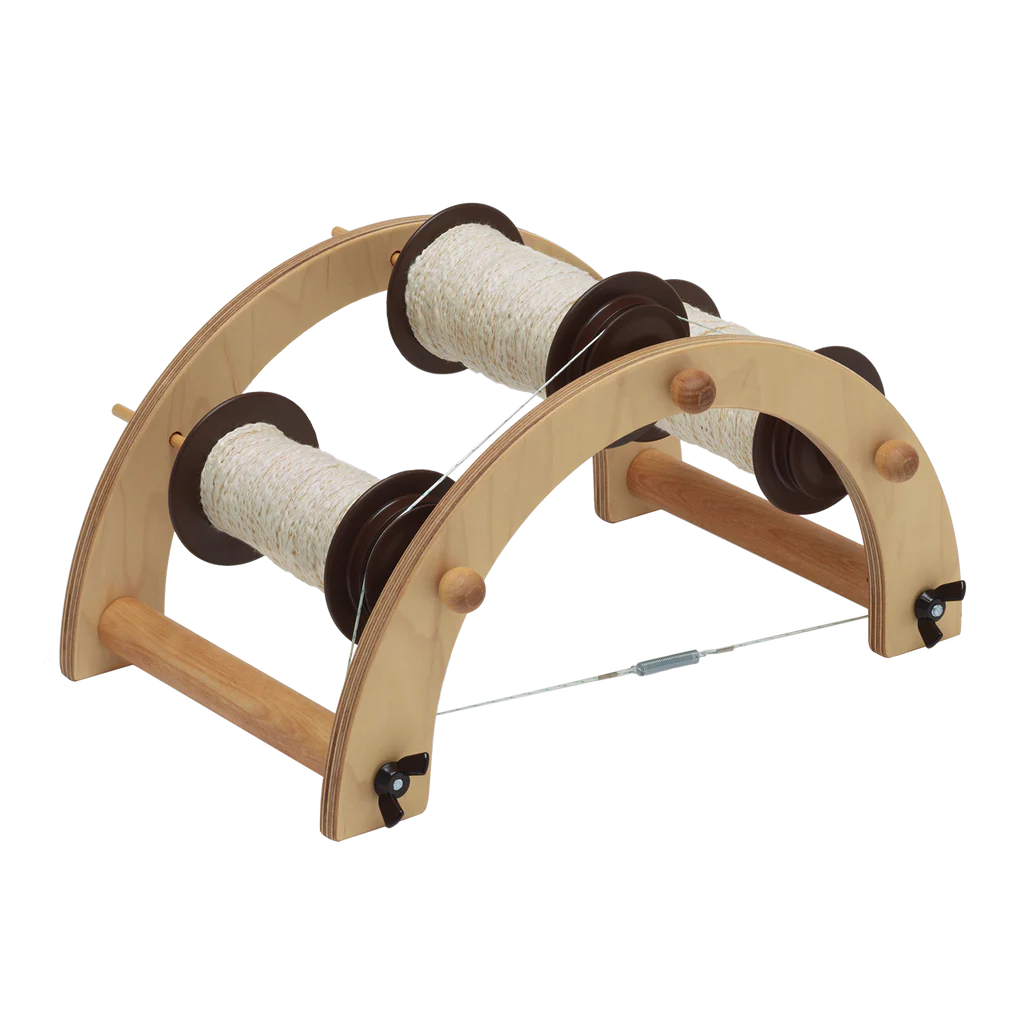 Holds and tensions up to 3 bobbins and packs flat for storage or travel. All Schacht regular, high-speed, travel, and bulky bobbins fit on it.